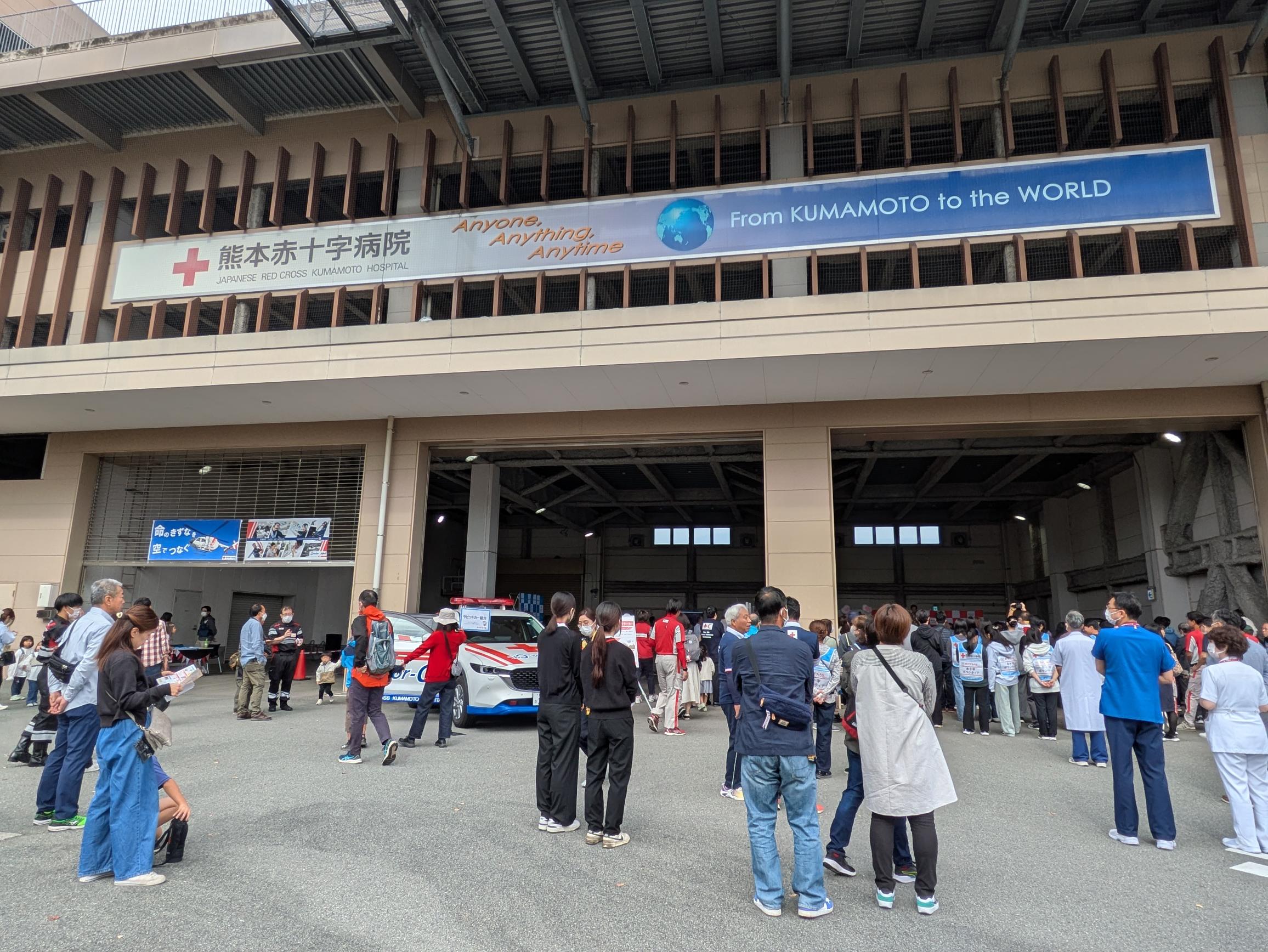熊本は日本赤十字社の誕生の地。そして現在は、熊本市東区長嶺南の同じ敷地内に4つの施設がそろう大きな医療ゾーンです。当日は、ヘリポートゾーンや病院ゾーン、健康管理センターゾーン、血液センターゾーン、県支部ゾーン、車両ゾーンがありにそれぞれ体験や見学ツアーなどがあり、とても大きなイベントとなり1800名を超える来場者でした。