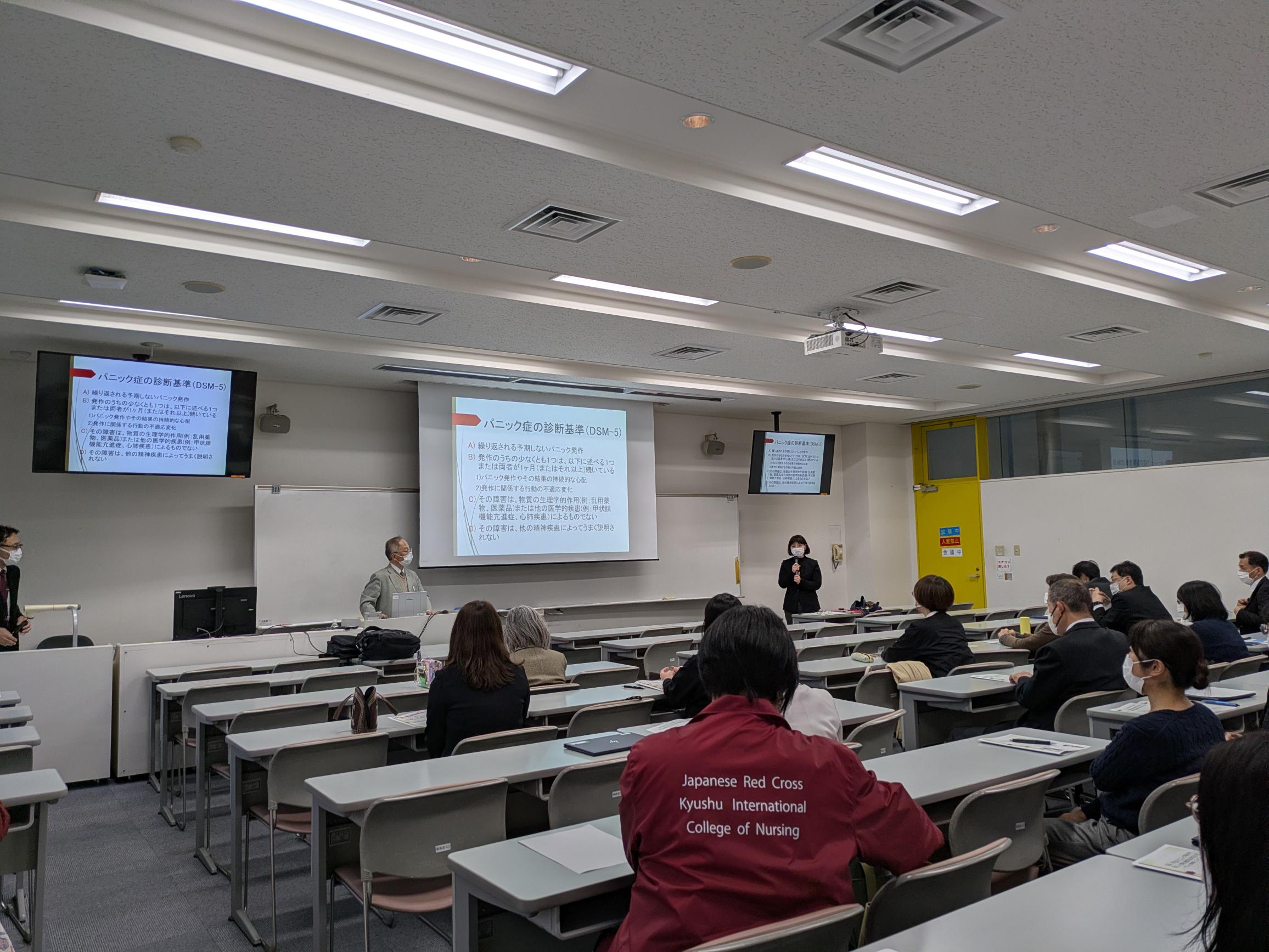 東海大学付属福岡高等学校と合同研修会を実施しました 2025年12月5日 11月27日(木)に福岡教育大学健康科学センター副センター長の貫名英之先生をお招きして、東海大学付属福岡高等学校の先生方と本学の教職員で合同研修会を実施しました。「生徒・学生がパニック発作を起こした際の適切な対応方法―パニック障害について―」をテーマにパニック障害に関する基礎知識とその具体的な対処方法、パニック障害と生活習慣、特に睡眠との関連を学びました。 そして、最後に、自律訓練法を教えてもらい、リラックスした状態を体験しました。