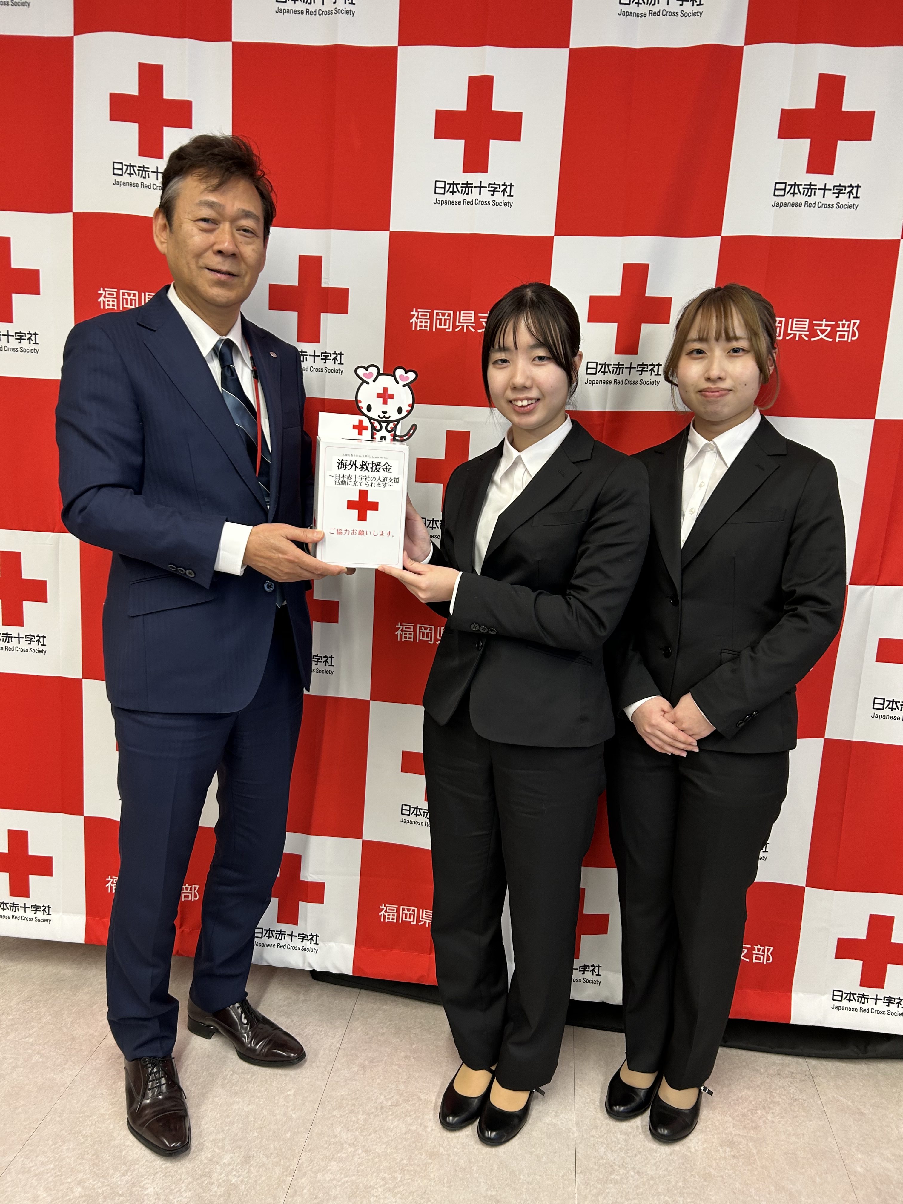 Peaceful Night*でみなさまからの募金と本学の同窓会である遥碧会からの募金をあわせて、海外救援金として1月8日に日本赤十字社福岡県支部に届けました。